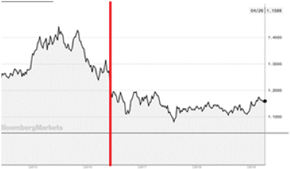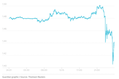 Ono što karakterizira cijeli proces Brexita je nesigurnost. Problem kod ovoga procesa je to što je on presedan i nitko ne zna kako bi cijeli proces trebao izgledati. Ekonomska teorija nas ući da očekivanja uvelike utječu na buduća ekonomska zbivanja. Budući u procesu Brexita dominira nesigurnost onda poslovni sektor vrlo teško može donositi odluke o budućnosti. Nesigurnost povodom Brexita se vidi kroz kretanje tečaja Funte. Graf 1. prikazuje kretanje Za vrijeme izborne noći dok se smatralo da UK ostati unutar EU tečaj Funte je bio stabilan. Međutim s objavom rezultat dolazi do snažnog pada.