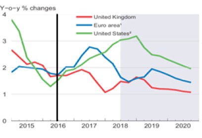 Nakon izborne noći tečaj Funte se nije oporavio te je padao ili stagnirao ovisno o razdoblju, Graf 2. Nesigurnost vezana uz budućnost kraljevine osjetila se i kroz kretanje GDP-a. Nakon referenduma dolazi do smanjenja GDP-a koje traje sve do danas. OECD u svojem izvještaju za 2019. godinu navodi kako se očekuje daljnji pad britanskoga GDP-a generiran smanjenjem osobne potražnje i investicija dominantno zbog nesigurnosti oko izlaska iz Europske unije. OECD predviđa pad GDP-a u dvije godine oko 2% ako ne dođe do dogovora s Europskom unijom.
