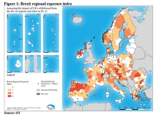 Assessing the impact of the UK’s withdrawal from the EU on regions and cities in EU27 link: https://cor.europa.eu/Documents/Migrated/news/impact-brexit.pdf