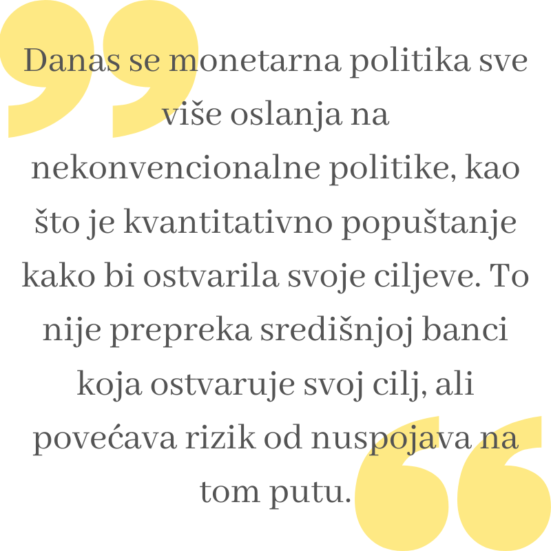 Danas, monetarna politika sve više se oslanja na nekonvencionalne politike, kao što je kvantitativno popuštanje kako bi ostvarila svoje ciljeve. To nije prepreka središnjoj banci koja ostvaruje svoj cilj, ali povećava rizik od nuspojava na tom putu.