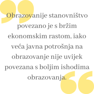 Obrazovanije stanovništvo povezano je s bržim ekonomskim rastom, iako veća javna potrošnja na obrazovanje nije uvijek povezana s boljim ishodima obrazovanja. Jedna od najvažnijih stvari koju vlada može učiniti za promicanje inkluzivnog prosperiteta jest osigurati mladim ljudima pristup boljim obrazovnim mogućnostima i up-to-date vještinama koje su im potrebne za uspjeh u današnjem dinamičnom, visokokvalificiranom gospodarstvu.