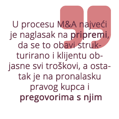 drej Grubišić (GRUBIŠIĆ&Partneri Osnivač i partner) i Igor Arbutina (TPA, direktor). Panel je započeo s trendovima u M&A consultingu, kako na njega utječu geopolitička događanja, Brexit, različite regulative i slično. Sudionici panela slažu se da je od 2016. godine došlo do oporavka, broj transakcija se povećao, a Željko Perić napominje da sam porast broja transakcija nije toliko bitan koliko je bitno razumjeti zašto se rast dogodio, odakle potražnja i tko su klijenti. Andrej Grubišić se nadovezao da su neki od razloga povećanja broja transakcija rast bruto nominalnog domaćeg proizvoda, te negativne kamatne stope što čini dostupnijim likvidna sredstva i tim sredstvima se akviziraju poduzeća; a zatim se osvrnuo na trenda M&A u Hrvatskoj koji smatra da je pod utjecajem reduciranog tržišta, da je puno vlasnika poduzeća iz razdoblja socijalizma te nisu upoznati sa spajanjima i akvizicijama, nasljeđuju ih djeca s malo znanja i bez talenta, a ono što u Hrvatskoj možda ima najveći utjecaj je takav mentalitet da se prodaja poduzeća smatra znakom slabosti. Panelisti se slažu da je takav pogled potpuno pogrešan jer je normalno osnovati poduzeće, prodati ga i novac od prodaje dalje reinvestirati.