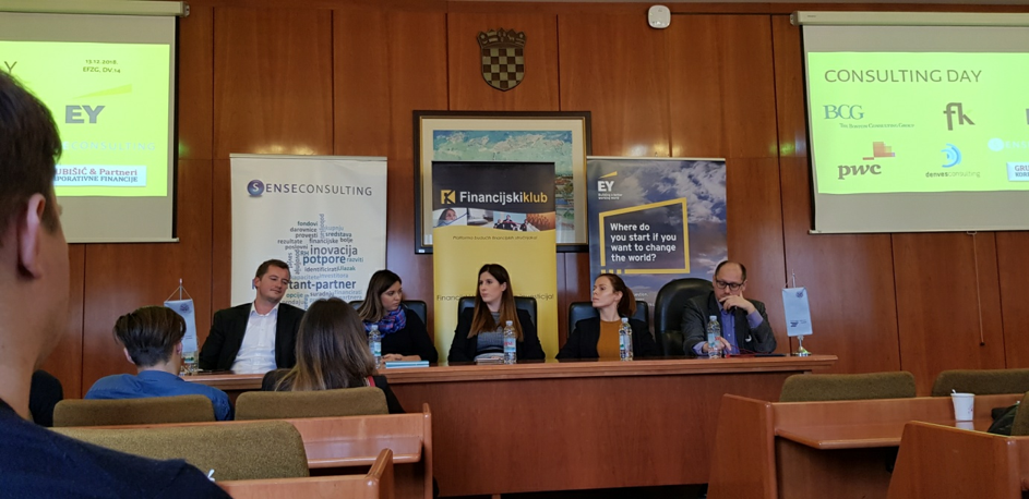 Nakon EY-ovog izlaganja, održan je panel na temu karijera u consultingu, što je bio velik mamac za studente, jer dojam je da su consulting karijere izrazito poželjne kod studenata iz raznih područja obrazovanja.