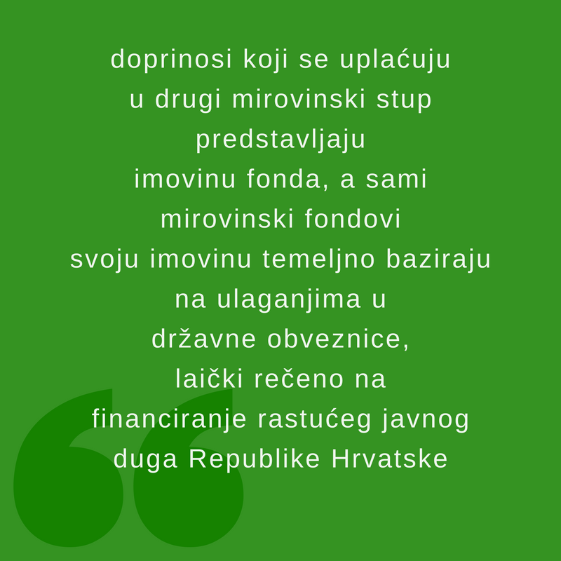 Prethodne godine, samo iz uplaćenih doprinosa zarađeno je više od pet milijardi kuna. Primjetno je da u većini mjeseci iznos uplaćenih doprinosa raste u odnosu na prošli mjesec te je važno za primijetiti da se samo iz doprinosa za drugi mirovinski stup prikupljaju enormne količine novca. Također, već spomenuti doprinosi koji se uplaćuju u drugi mirovinski stup predstavljaju imovinu fonda, a sami mirovinski fondovi svoju imovinu temeljno baziraju na ulaganjima u državne obveznice, laički rečeno na financiranje rastućeg javnog duga Republike Hrvatske.