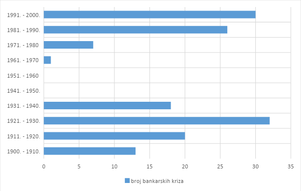 Graf 2. Bankarske krize po desetljećima u razdoblju od 1900. do 2000. godine