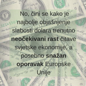 Priča o slabljenju američkog dolara jedna je od najvažnijih tema na Wall Streetu, posebice od nedavnog kraha burze. Dolar je 16. veljače 2018. godine u odnosu na glavne svjetske valute dosegao jednu od najnižih razina u posljednje tri godine. Iako je u posljednjih nekoliko godina „snažan dolar“ bio centar svjetskih financijskih priča, uz prisutne niske kamatne stope i visoke cijene financijske imovine, početkom 2017. godine dolar je počeo padati opterećen nizom različitih faktora, a kamatne stope rasti.