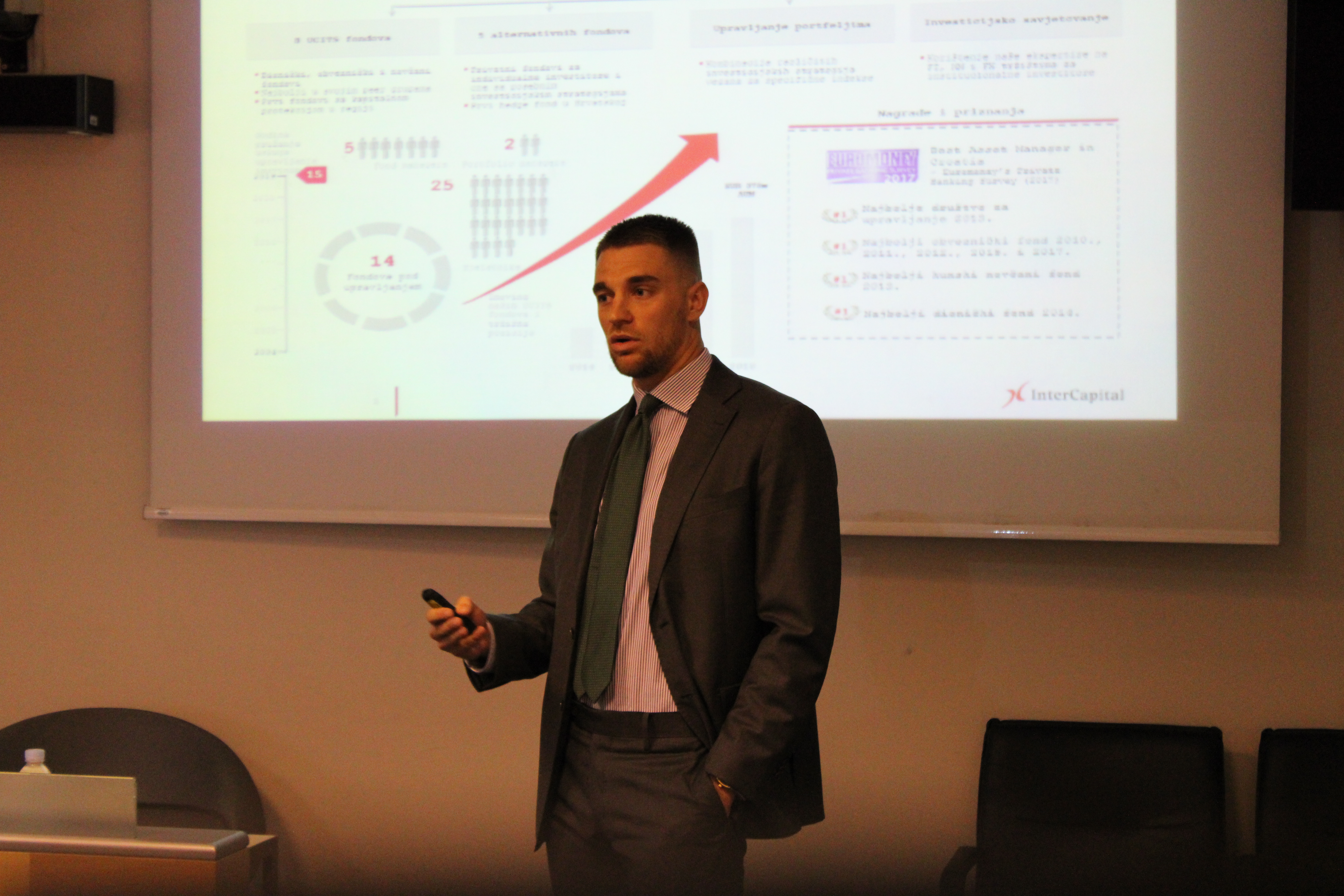 Nakon što su članovi Ana Zrilić i Pave Rebić održali prezentaciju o Netflixovoj industriji i konkurenciji, drugi gost predavač bio je Niko Maričić iz InterCapitala. G. Maričić nam je uvodno izložio okvirnu strukturu InterCapital Asset Managementa, te je prešao na temu svojeg izlaganja, a to je upravljanje obvezničkim fondovima. Prvo je Maričić studentima objasnio razliku između fondova s fiksnim prinosom i dioničkih fondova. Najbitnija razlika je volatilnost instrumenta trgovine, gdje su dionice volatilnije od obveznica. Druge bitne razlike su mjesto i iznosi trgovanja. Obvezničkim fondovima može se upravljati kroz dvije vrste fondova, UCITS fond ili AIF (alternativni) fond. Osnovna razlika između ova dva fonda je u regulaciji. AIF fondovi su rizičniji te u njih ulažu u pravilu imućniji pojedinci koji vežu sredstva uz fond. UCITS fondove obilježava mogućnost povlačenja novca na zahtjev, a upravljaju se tako da se minimizira volatilnost radi ostvarenja dugoročnog rasta. UCITS fondovi dijele se na fondove koji ulažu regionalno i fondove koji ulažu globalno, a to je određeno kroz prospekt fonda.