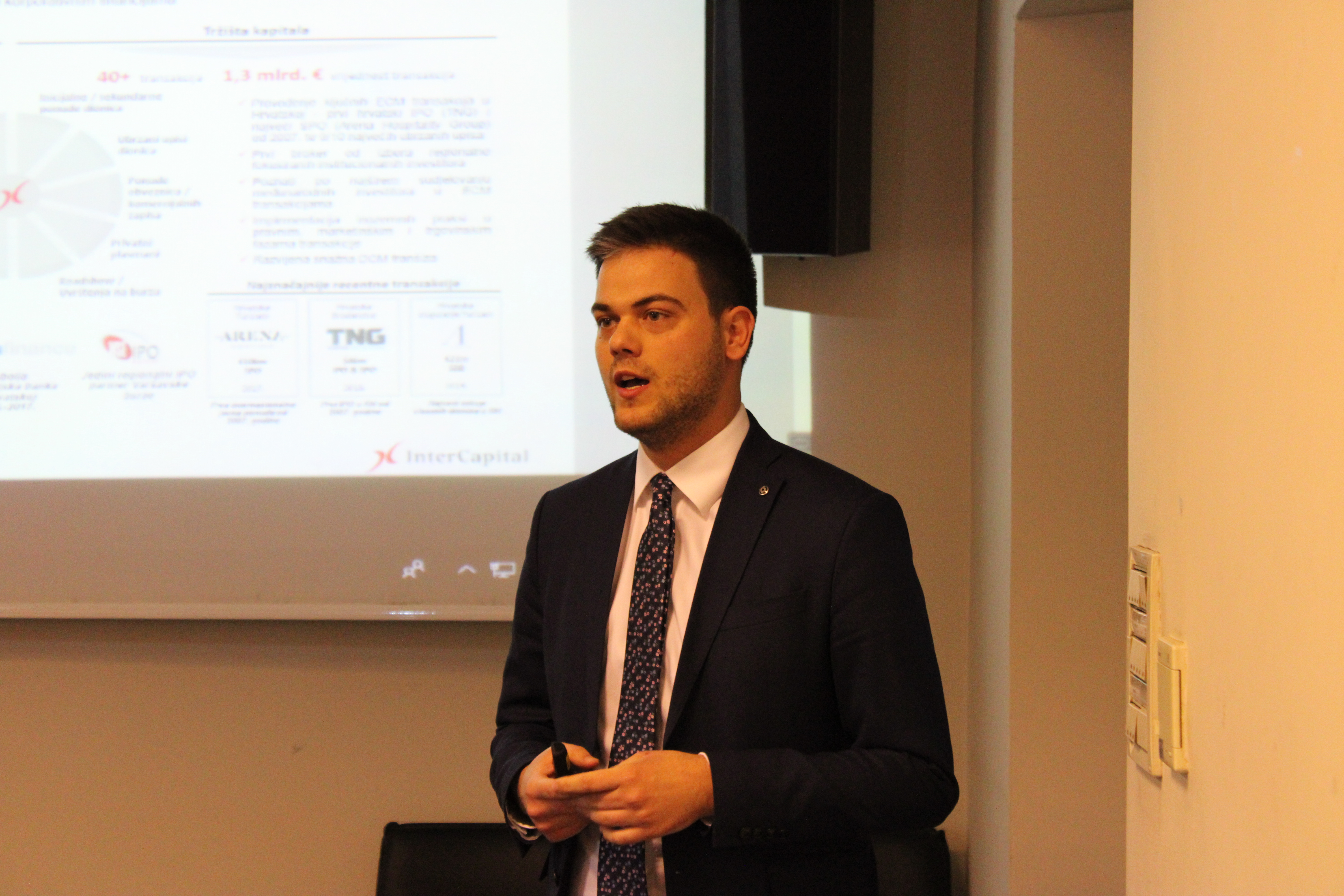Nakon što su Daria Bubalo, Jure Borovac i Antonio Gracin predstavili procjenu fer vijednosti dionice Netflixa, slijedeći za govornicom bio je Ivan Kovačev, također iz InterCapitala. G. Kovačev se studentima obratio na temu procjene vrijednosti u praksi. Da bi nas uveo u temu, osvrnuo se na procjenu vrijednosti Netflixa koju su neposredno prije predstavili članovi Financijskog kluba, rekavši kako je zadovoljan viđenim, međutim da u praksi postoje značajne razlike u procjeni vrijednosti u odnosu na ono što je studentima omogućeno na fakultetu, prvenstveno radi ograničenosti pristupu ključnim informacijama. Objašnjava kako je u praksi zbog suradnje s kompanijama i dostupnosti značajno veće količine informacija moguće posao učiniti izrazito temeljito. Kovačev dalje ističe kako se multiplikatori često koriste kao sredstvo procjene vrijednosti, ali pod uvjetom da je zadovoljena pretpostavka efikasnosti tržišta. Također, istaknuo je važnost razumijevanja da ipak tržišta nisu sasvim efikasna jer je moguće da cijena ne odražava vrijednost, već da konvergira prema vrijednosti tržišta. Zanimljivo je da su tržišta efikasnija, ako više sudionika vjeruje da može pravilno procijeniti vrijednost, jer se upravo tada dešava najbolja konvergencija prema stvarnoj vrijednosti. No Kovačev kaže kako tu priči nije kraj, jer percepcija vrijednosti i sklonost riziku variraju od investitora do investitora.