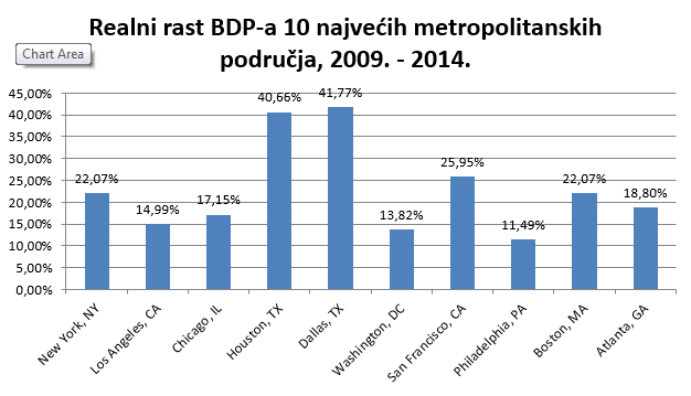 Grafikon 3. Realni rast BDP-a 10 najvećih metropolitanskih područja SAD, 2009. – 2014.