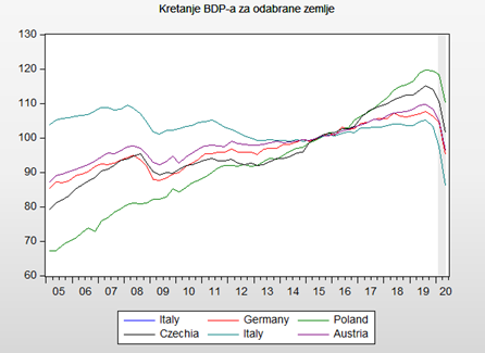 Graf 3: Kretanje BDP-a za odabrane zemlje do II. kvartala 2020.