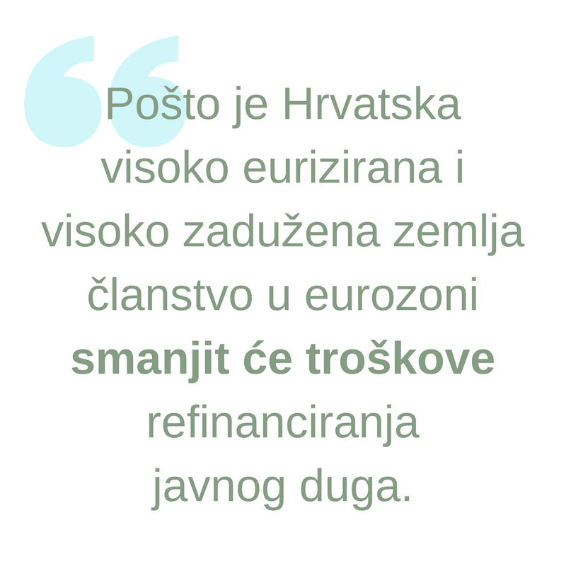 stabilnijom i provesti konverziju pod najboljim uvjetima za cijelu državu. Hrvatsku možemo usporediti i sa Slovenijom u pogledu dugoročnih državnih obveznica. Nakon uvođenja eura Slovenija je ostvarila povoljnije kretanje prinosa na državne obveznice, nego u razdoblju prije eura. To znači da se država mogla zaduživati povoljnije, a neposredno je dovelo i do smanjenja troškova financiranja za građane i poduzeća. Sličan scenarij očekuje se i za Hrvatsku.