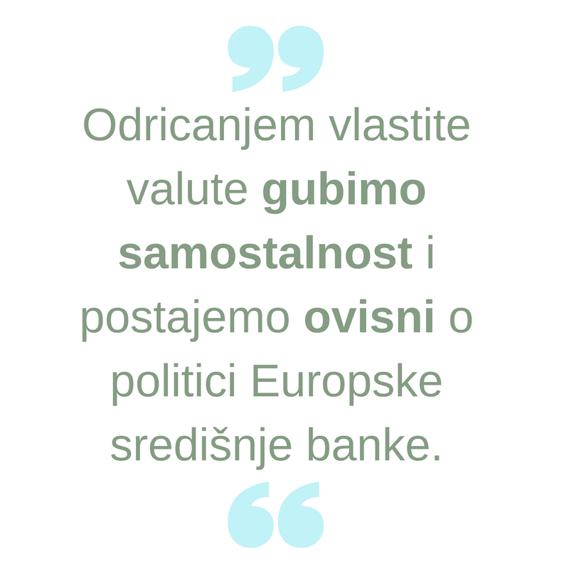 Zbog brojnih iznesenih dobrih strana stručnjaci se slažu da će uvođenje eura imati pozitivan učinak na gospodarstvo. S druge strane, uvođenje eura moramo promatrati s određenom dozom opreznosti bez obzira na iznošenje brojnih prednosti od strane Vlade. Odricanjem vlastite valute gubimo samostalnost i postajemo ovisni o politici Europske središnje banke. Osim ekonomskih učinaka, uvođenje eura značilo bi gubitak nacionalne valute kao simbola suvereniteta i nacionalnog identiteta što predstavlja posebnost svake pa tako i naše Republike.