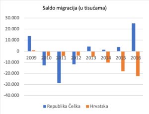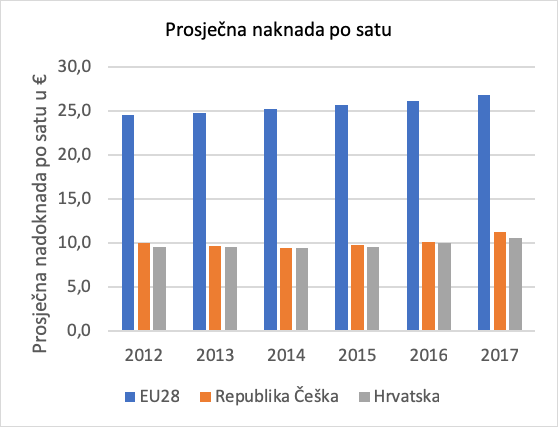 Prosječna naknada po satu u Češkoj je dvostruko manja od prosjeka EU28 i vrlo je slična Hrvatskoj. U 2017. godini iznosila je 11.3 € i u blagom je porastu od 2014. godine. Primjećuje se da je smanjenje nezaposlenosti uzrokovalo pritisak na povećanje plaća što je zatim uzrokovalo povećanje stope participacije. Radi kvalitetnije slike tržišta rada i aktualne teme emigracije u Hrvatskoj uspoređivanjem salda migracije dolazi se do sljedećih zaključaka. Pretpostavimo da značajna emigracija ima pozitivan utjecaj na nezaposlenost. Nakon krize 2008. godine koja se pretvorila u jaku recesiju u EU uspostavljen je trend pozitivne nezaposlenosti. Zanimljivo je da je saldo migracije za Češku za vrijeme krize bio vrlo negativan te je ona zabilježila u krizi pad nezaposlenosti 2011. godine u kojoj je zabilježeno i najveće iseljavanje. Sličan trend prati i Hrvatska u kojoj se od 2010. godine neprekidno nastavlja negativan trend migracija, a stopa nezaposlenosti pada od 2012. godine. Međutim u godini kada je Češka zabilježila najveće pozitivne migracije ujedno je zabilježila i najmanju stopu nezaposlenosti – to odražava koliko je radna snaga iscrpljena u Češkoj te se ekonomija zbog nastavka rasta treba okrenuti prema inozemnim radnicima. Spomenuti pokazatelji daju jednu generalnu sliku tržišta rada u Češkoj, ali zašto je po njima ono toliko jako? Hrvatsko tržište rada, usprkos sličnoj pozadini, nalazi se u mnogo lošijem položaju.