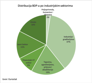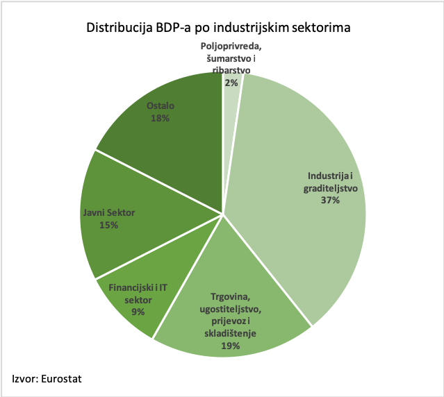 Pogledamo li distribuciju BDP – a po industrijskim sektorima u 2017. godini najveći udio uzima sektor industrije i graditeljstva te iznosi 37%, sljedeći najveći udio uzima sektor trgovine, ugostiteljstva, prijevoza i skladištenja (19%). Što znači da se 56% Češke ekonomije zasniva na industrijama koje u prosjeku stvaraju više radnih mjesta. Većina proizvedenih radnih mjesta su jednostavna te ne zahtijevaju visoko obrazovane radnike što se manifestiralo u niskoj prosječnoj naknadi po satu. Što su radna mjesta manje složena to je njihova produktivnost manja. Time dolazi do rizika povećanja nezaposlenosti jer manja produktivnost, a veliki pritisak na povećanje plaća rezultira većom nezaposlenošću. Za Češko tržište rada postoje određeni rizici kojima je ono ponajviše sklono. Globalni trendovi ukazuju na daljnji razvitak tehnologije. Najveći izazov Češkoj sigurno će biti skori dolazak automatizacije. Istraživanja ukazuju na to da je skoro 10% radnih mjesta ugroženih automatizacijom. Sudeći po tome da su jedni od najvećih poslodavaca u zemlji poduzeća Škoda, Hyundai, Toyota, Peugeot, Citroaen itd., automatizacija u autoindustriji će imati veliki negativni utjecaj na Češko tržište rada. Vlada će morati reagirati na te rizike promjenom politike poreznih olakšica i subvencija za proizvodnu industriju jer to više nije dugoročno stabilna politika. Osim automatizacije velik rizik za Češku ekonomiju predstavlja velika ovisnost o Europskoj, a osobito Njemačkoj ekonomiji. Češki izvoz za Europu iznosi 86%, a konkretno za Njemačku 35%. Ako dođe do recesije u Njemačkoj ona će imat veliki utjecaj na Češku ekonomiju te bi čak mogla izazvati recesiju. Češka je vrlo sklona eksternim šokovima.